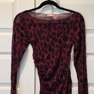 This is a Free People Something Extra Tunic in a sheer mesh fabrication with an animal print.