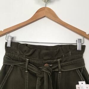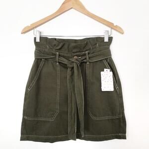 NWT Free People Splendor In The Grass Skirt Green Paper Bag Waist Boho Size 2