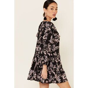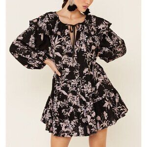 NWT Free People Sunbaked Floral Long Sleeve Swing Minidress Black Combo Medium 8/10