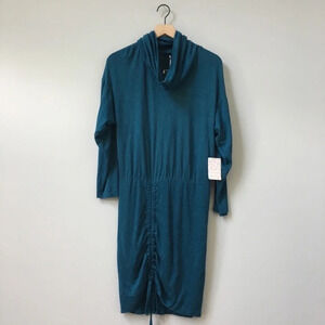 NWT Free People Sundown Mini Ruched Knit sweater Dress cowl neck 0B890369 green