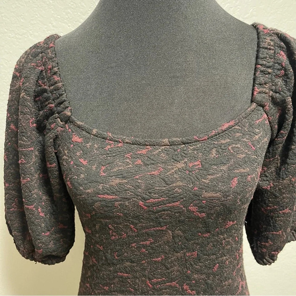 NWT Free People Sunset Mini Dress with Puff Sleeves, Black, X-Small