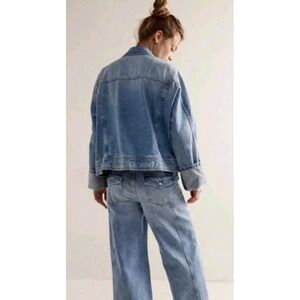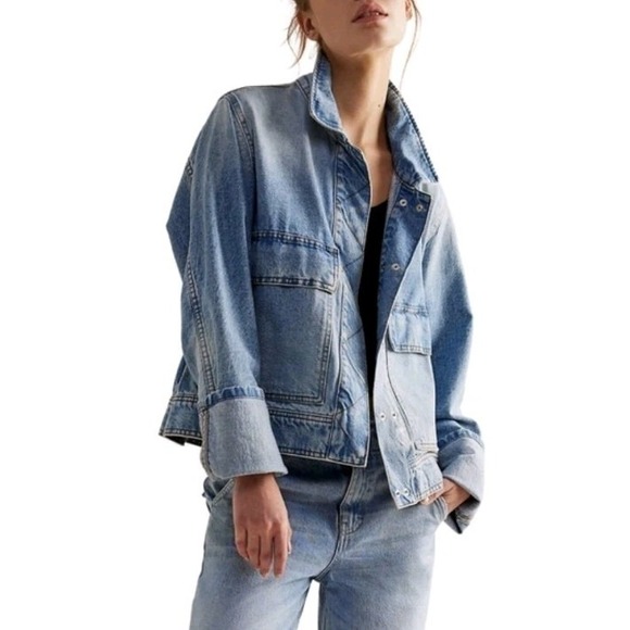 NWT Free People Suzy Denim Jacket We The Free Snap Pocket Oversize Sunny SideXL