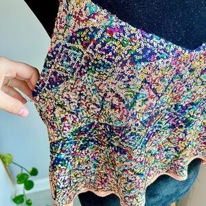 NWT Free People TWILIGHT ROSE COMBO Sequin Scalloped Cropped Top