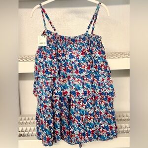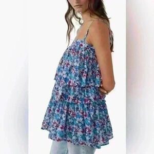 NWT Free People Talia Tiered Spaghetti Strap Tank Blue Combo Size S