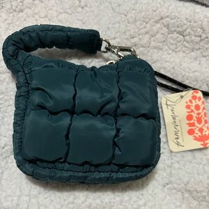 Stylish teal quilted bag perfect for any occasion. Features a sleek design with a comfortable handle.