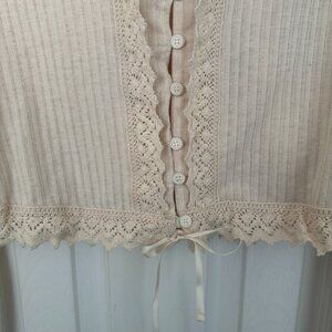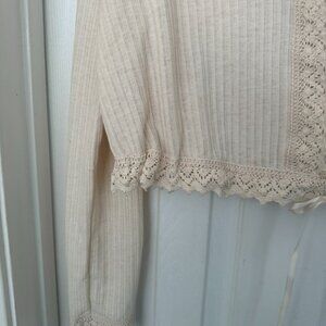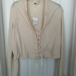 NWT, Free People Third Date Top, Crocheted Hem, Almond / Off-white Color, L