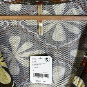 NWT Free People Through the Meadow Top Womens S Dried Basil Combo Floral Ruffle