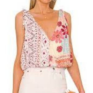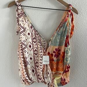NWT Free People Tied To You Print Surplice Tank in Tropical Combo XS