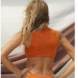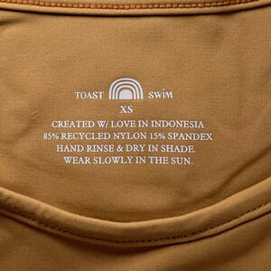 This is a brand new with tags Toast Swim Signature Peek a Boo bikini top! The Peek A Boo is a take on the halter top featuring tank arms, a scoop neckline and a cutout moon with a drawstring tie at the belly button. This swimwear top is versatile and doubles as a halter top. *Please note that stock photo is for fit & style reference only, this item color is Doe or Beige and differs from stock photos.