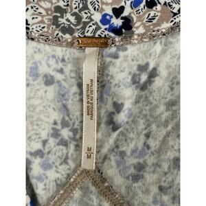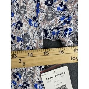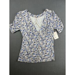NWT Free People Top Womens M Blue Floral Hollywood Printed Short Sleeve V-Neck