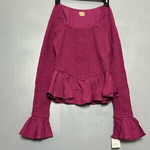 NWT Free People Tropical Vibes in Sweetheart Smocked Long Sleeve Peplum Top