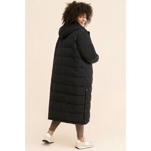 winter jacket, longline puffer, long hooded jacket, cold weather, water resistant