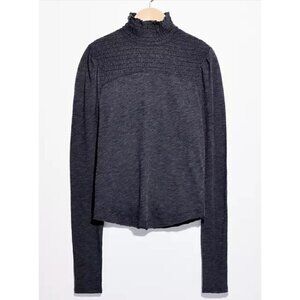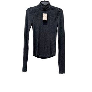 NWT Free People WE THE FREE Size XS Caroline Top ruched turtleneck Grey MSRP $68