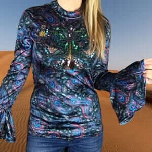 NWT - Free People WE THE FREE Velvet Paisley L'Amour bell sleeve top Size: XS
