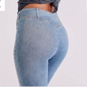 The perfect pair of flares from our The CRVY Collection featured in a high-rise, pull on silhouette and semi-stretch denim fabrication for a forever flattering fit.