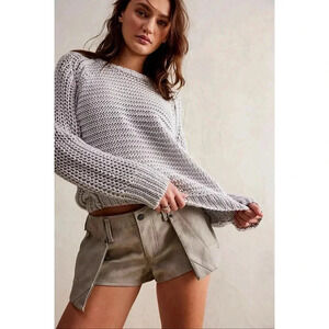 NWT Free People We The Free Essential Linen Pullover Sweater Crew Knit Gray