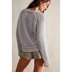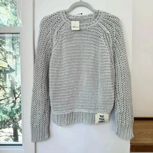 NWT Free People We The Free Essential Linen Pullover Sweater Crew Knit Grey