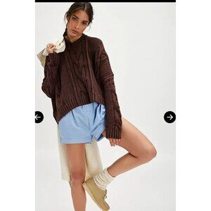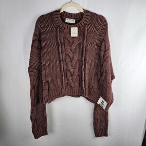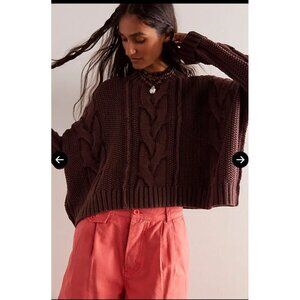NWT! Free People We The Free In A Daze Pullover Sweater Size XL Cable Knit Brown