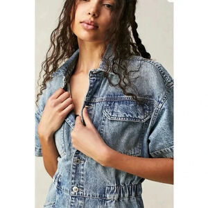 NWT Free People We The Free Marci Denim One Piece Romper Jeans Shortalls Blue