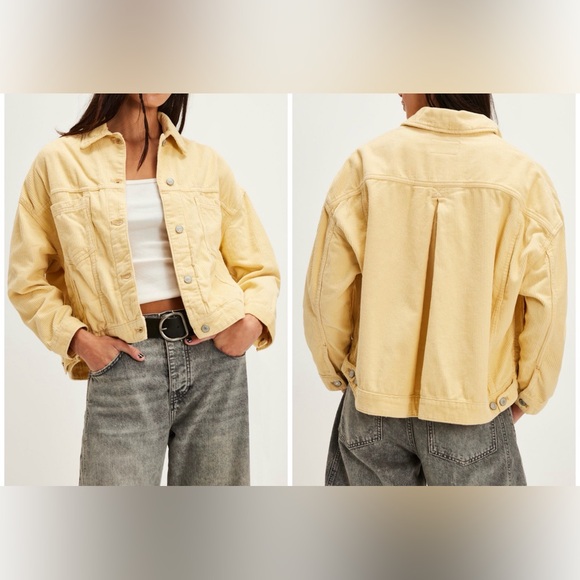 NWT Free People We The Free Opal Swing Cord Jacket - pear sorbet yellow - medium