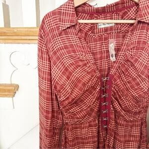 NWT Free People We The Free Red Combo Plaid Catalina Remade Shirt Combo Tunic S