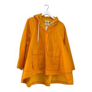 Brave any storm in this We The Free raincoat. It features a relaxed, oversized, swingy fit, a showerproof cotton-nylon fabrication, and an attached hood with adjustable drawstrings. This rain coat is also designed with a storm flap, snap-front closure, flap pockets, and a rounded hem. It is the perfect addition to any coat collection.