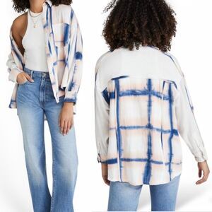 A soft and slouchy layer that's ready for the weekend. This cotton gauze Free People button down stands out with a mixed plaid panel design and soft splashes of playful tie dye.