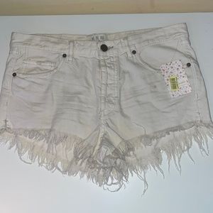 NWT Free People We The Free White distressed threaded jean denim shorts