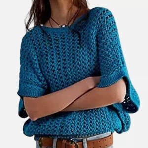 NWT Free People We the Free Ocean Palace Sophia Blue Boho Knit Women's Sweater in wonderful condition. No flaws. Non-smoking, no pet home.