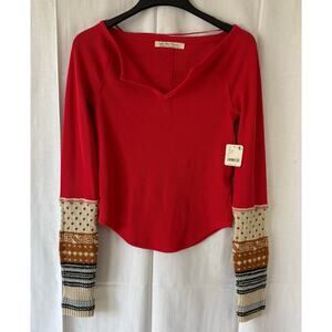 NWT Free People We the Free sz Medium Cozy Craft Thermal Shirt Top Red