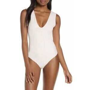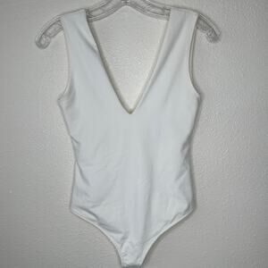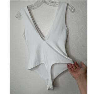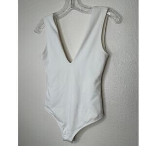 Free People White Keep It Sleek Deep V-Neck Sleeveless Bodysuit