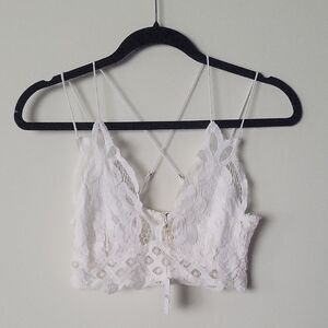 NWT Free People White S Adella Bralette Crop Top Crochet Embroider Lace Eyelet