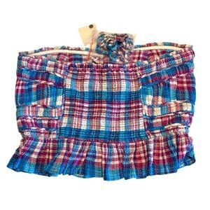 NWT Free People Women's Blue & Purple Plaid Peplum Tube Top Size Large