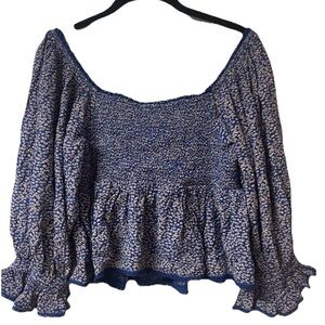 NWT Free People Women's Brittnee Printed Top in Blue Combo Ditzy floral Size M