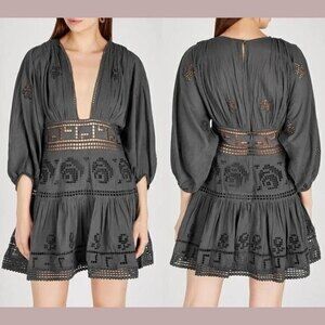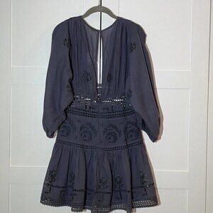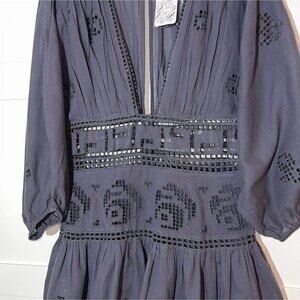 NWT, Free People Women's Embroidered Dress, Long Sleeves, Boho, Size 6, Gray