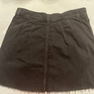 A classic Free People A-line miniskirt in dark denim finished with a raw hem for a casual feel. Slouchy tees and crisp blouses work equally well with this piece.