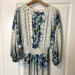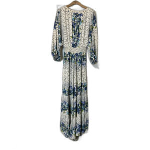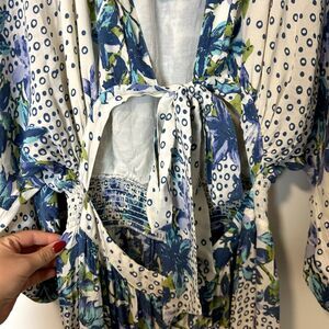 NWT Free People Womens x REVOLVE Paradise Jumpsuit Size Medium Long Sleeve Blue White Green Casual Spring Summer Lounge Beach Event Party Ivory Combo Lined Boho 100% Viscose OB1662138