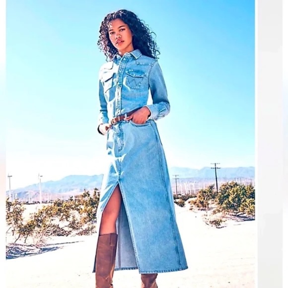 NWT Free People Wrangler Denim Skirtall Maxi Dress XS