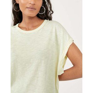 An effortless essential for everyday style, this perfect vintage-inspired tee is featured in a boxy, cropped silhouette with rolled sleeve cuffs for added dimension.