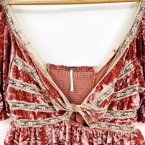 NWT Free People Yours Truly Velvet Peplum Crop Top in Mauve, Sz Small, Festival