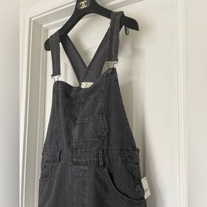 NWT Free People Ziggy Denim Shortalls Black Overalls Shorts XL we the free