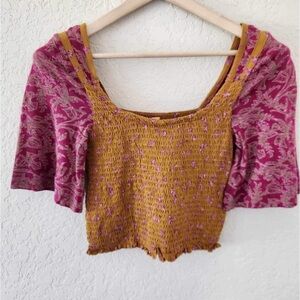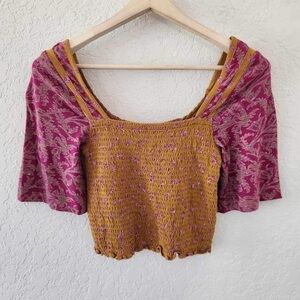 NWT Free People Marigold Top Floral Leaf Golden Combo Bohemian Stretch Smocked Cropped top, Medium, New. In new condition and never worn. No rips, tears or stains. 60%, cotton, 40% modal exclusive of elastic. Machine wash, cold, gentle with light colors reshape and lay flat to dry. May be dry cleaned.