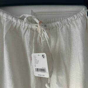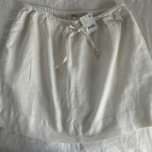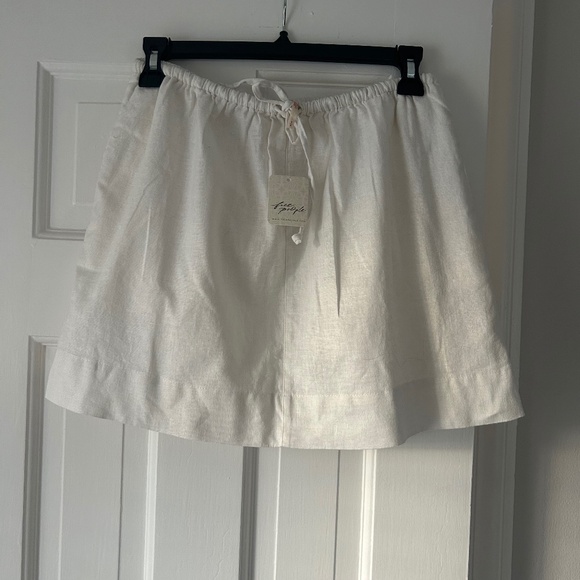 NWT Free People cream color linen/cotton drawstring mini skirt. Unlined. Size small