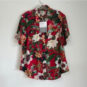 NWT Free People x Sandrine Rose Hawaiian Button-Down Shirt, Red, Women’s Small