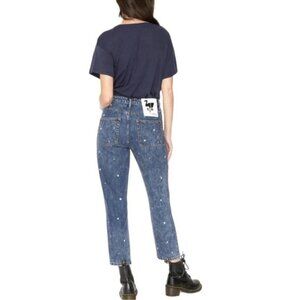 NWT Free People x Sandrine Rose Straight Leg Jean 28 Bleached Polka Dot Blue