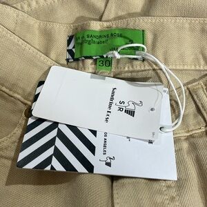 New with tags Free People x Sandrine Rose Wide Leg high rise Jeans Sunflower Tan Beige Cream Rise 13 inches Waist 30 inches Inseam 29 inches Top to bottom 40 inches
