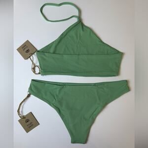 NWT Free People x Toast Bikini Set Apex Top Low Rise Bottoms Ming Green Size XS
