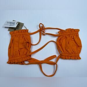 NWT Free People x Toast Ruffle Bikini Bandeau Bikini Top Tiger Orange Size Sm