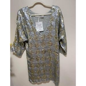 Shine bright in this so special mini dress featured in a classic long sleeve silhouette and sequin-adorned fabrication with low scoop back for added shape.