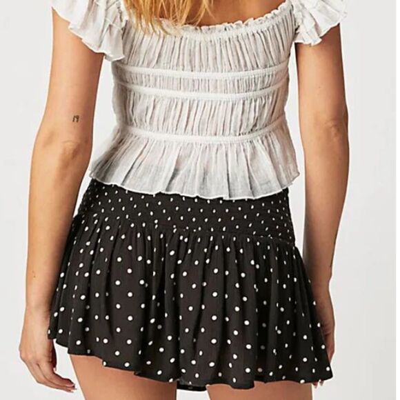NWT Free People Gobi Skort Mini Black White Polka Dots Mid Rise Viscose Cinched